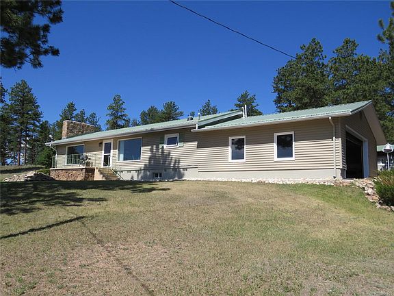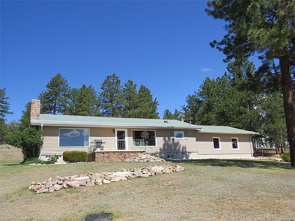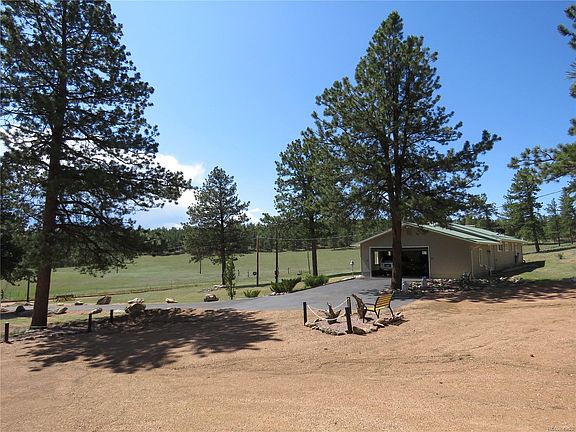 Iconic 46 acre Florissant Colorado ranch adjoins Fossil Beds National Monument. The home, the barn, the guest house, the Pikes Peak view...all are included in this wonderful listing! Fabulous Pikes Peak view from immaculate ranch-style home with two fireplaces, full finished basement, and attached garage. Large metal shop bldg./drive-thru RV with 14 ft. doors. Unique, separate guest house, all set amidst easily accessed, usable acres of beautiful groomed forest and open, rolling pastureland which borders Fossil Beds on the east. Zoned AG. There are several old wooden structures including a picturesque barn and windmill.Spacious & sunny home takes full advantage of its picture perfect Pikes Peak view. This is a rare find!!!