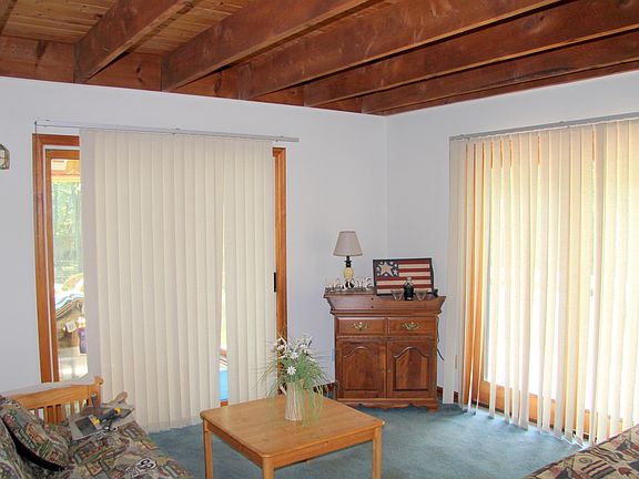 4 SEASON MOUNTAIN LAKE RETREAT -AMENITY FILLED - Country contemporary home offering 3 bedrooms and 3 baths, bright and airy living area with tongue & groove beamed ceilings and propane fireplace, open floor plan, sun room and lower level family room. Beautiful wood accents, Located in a quiet area, but still just a short walk to the beach.Master Bdrm w/ walk-in closet. Private bath w/ jacuzzi. Home recently painted and stained. New roof. Thermos insulated glass doors & windows Kitchen appliances 3 yrs. old.