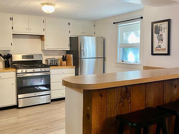 Looking for Vermont history and charm? Situated right in the village of Londonderry is this quaint farmhouse on just a quarter acre. Walk to shops, eateries, galleries, dance or yoga classes, bars, a grocery, a liquor store, or across the street to the farmers market on Saturdays from Memorial Day to Labor Day. Four bedrooms, two bathrooms, double staircases, brand new stainless appliances, new kitchen floor and paint and lots of living space. There is a pretty side yard with a picket fence and a large mudroom for bikes and ski equipment. Make this your primary home, vacation get away, or investment property. 3 mi to Magic, 7 mi to Bromley, and 12 mi to Stratton.