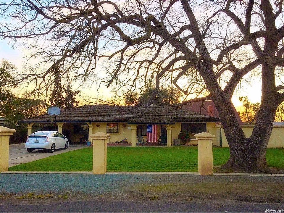Beautiful hacienda-ranch style home on 1.49 acres. This 3 bd/2 bth home has a living room and a den as well as an entertainment room. Kitchen and dining area has gorgeous real wood flooring. Very inviting back yard/court area. 30X40 shop. Rear of land extends to the rear over 500 feet, half of which is on sprinkler system. Garage converted to master bd rm/car port area. Also has mother-in-law quarters,non permited but done in professional workmanship manner.Seller states home is 2,400 sg ft.