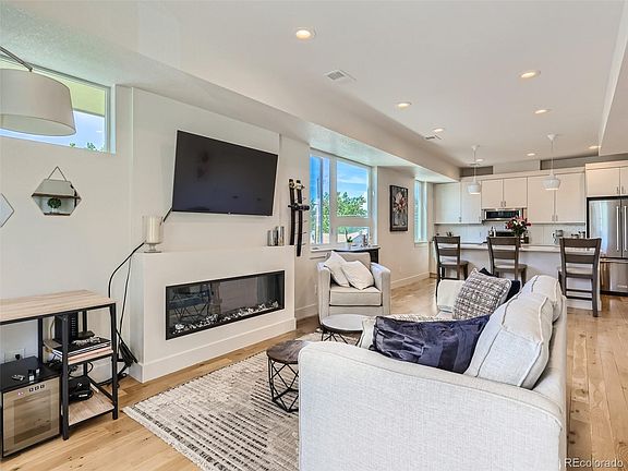Light-filled contemporary Denver corner unit with 2 enchanting wrap-around decks. Immerse yourself in spectacular rooftop views of the mountains! This beautiful home boasts newer construction in pristine condition. Close to restaurants, bars, and amenities. Close to Natural Grocers and Junction Food and Drink. Enjoy easy access to Cherry Creek, DTC, and University...I-25, bus, and light rail. Experience a truly well-designed floorplan with ample storage and organizational features. Revel in modern upgrades throughout, including a tankless water heater and electric fireplace.