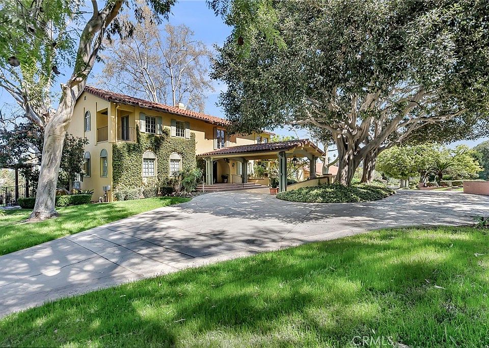 ARLINGTON HEIGHTS- HISTORIC GREENBELT- Very rare original Orchard Home set on a long driveway off of a secluded cul-de-sac creating a very rural feel yet just a few short minutes across Historic Victoria Avenue to the 91 freeway and all the necessities! Built for the Chester S. Riley family in 1929 and originally centered in their 80 acres Citrus Grove, This home is currently offered for first time in over 45 years only the second time in its history! Enter the property down the Jacaranda flanked private drive to the imposing entry gate from which you get a peak at this stunning Italianate Residence perched on a promontory in the center of the property; Upon entering your are welcomed in the circular driveway under the shelter of the porte cochre and the impressive iron and glass entry door. The stately foyer with elegant stairway affords views into the massive formal living room with original Batchelder tile fireplace as well as the library/study and formal dining room; The expansive kitchen and breakfast room are to your right while the ground floor bedroom with ensuite bath or to your left. At the end of the family room is the short staircase down to the family room with a fireplace, billiard space and walk-behind bar. There is also an additional guest bath. Ascending the staircase to the upper hall where you will find 4 additional bedrooms including the primary suite with 4 closets and a sitting room with fireplace; A backstair leads conveniently down to the kitchen area. The grounds are beautifully maintained with sweeping lawns and mature specimen shade trees; The Orange Grove is irrigated with Gage Canal water delivered to the property by authority of the 3 water shares that convey with the residence. The pool area across from the front of the residence offers some sense of whimsy with the bridge crossing over it; The garage which was originally used to house farming equipment is capable of holding at least 10 cars plus the additional covered parking of the carport for up to six more vehicles! Ample room for the development of horse stable and corrals in the event the owners desires! Incredibly well maintained over the past 45 years with all of the original Art-Deco Era details in tact including bathroom tiles/fixtures as well as most of the original lighting details including chandeliers and wall sconces. Original steel casement windows in excellent condition throughout! Truly a unique opportunity to own a piece of history!