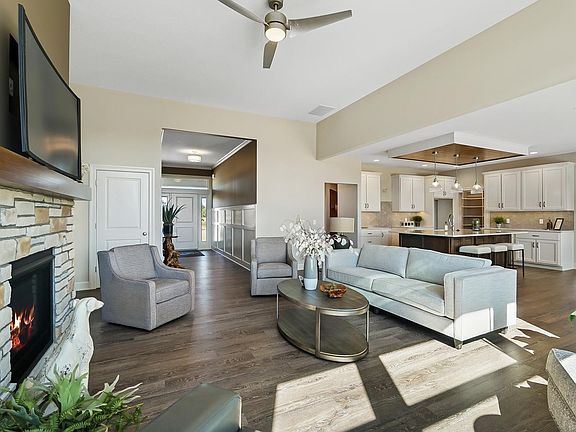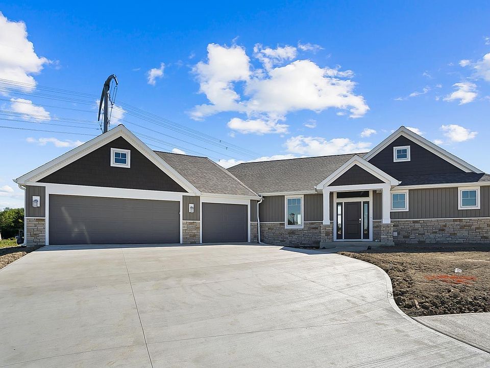 Bob Buescher Homes presents a brand new exquisitely designed, spacious open concept, single story home in the community of Mercato – southwest Fort Wayne! This luxurious home is filled with natural light, elegant features, and includes 3 bedrooms, 2.5 bathrooms, a lovely den, covered back porch, and a very generous 929 sq ft 3 car garage. As you enter the home, you'll be drawn to the scenic water view, which is captured by the large glass pane windows in the great room, kitchen, and dining area. The great room boasts a stylish fireplace with 11+ high ceilings and is open to the kitchen and dining areas. With handcrafted kitchen cabinets by Zehr, quartz countertops, an 8X5 island with storage, and an oversized walk-in pantry, you will be able to prepare meals and entertain with ease. Upon entering your master bedroom suite, you'll appreciate the private escape and lovely views, while enjoying a spa like bathroom which exhibits a double vanity with cultured marble top, walk-in tiled shower, oversized closet, and easy access to the laundry room. Bedrooms 2 and 3 are sizable and have ample closet space. This beautiful home is located close to walking trails and not far from Lutheran Hospital, I69, restaurants and shopping!
