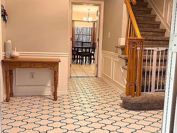 Spacious 4BR 2.5BA stately Colonial close to highways and shopping, packed with potential on a private wooded lot! 1st floor features a formal front living room, family room with w/hardwood floors, fireplace, huge rear picture window, and beamed ceiling, large eat-in kitchen with w/ceramic tile floor and lots of cabinet space, formal dining room, half bath, rear door to backyard stairwell, and laundry room w/walk-in shower. Upstairs you will find the primary suite with 3 closets, make-up vanity, a full bath with a walk-in shower, 3 addl well-appointed bedrooms (2 with double closets), a guest full bath, and two hallway closets for convenient storage! Home also features a partially finished walk-out basement, 2 car attached garage w/newer garage door, and 150 amp electric service! The current owners have updated paint throughout and replaced many lighting fixtures. The bathrooms have new plumbing fixtures and updates. New Carpet in Living, Hallway, Owners Suite, and stairwell.