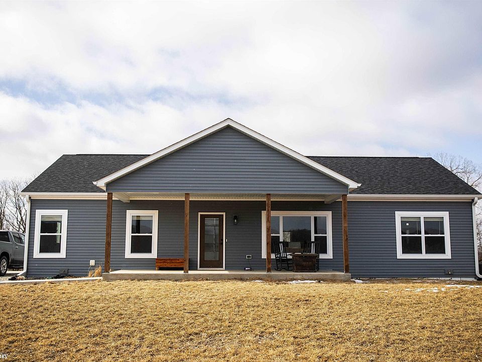 This beautiful ranch home was recently built in 2021 and sits on nearly 10 acres of land. The home features an open concept living, dining, and large kitchen, as well as the master suite, laundry and mud room, pantry, and 2 additional bedrooms and full bath. The large, unfinished, walkout basement is plumbed for an additional bathroom and set up for heated floors as well. You can enjoy the amazing views and wildlife from the large back deck or the patio! The detached garage/shed has concrete floors and lots of space for parking and storage. This property is located about 5 miles south east of Davis City on a paved road.