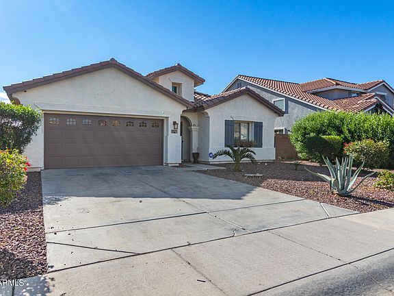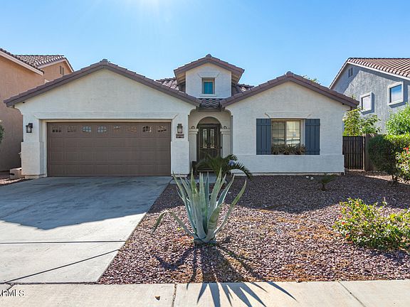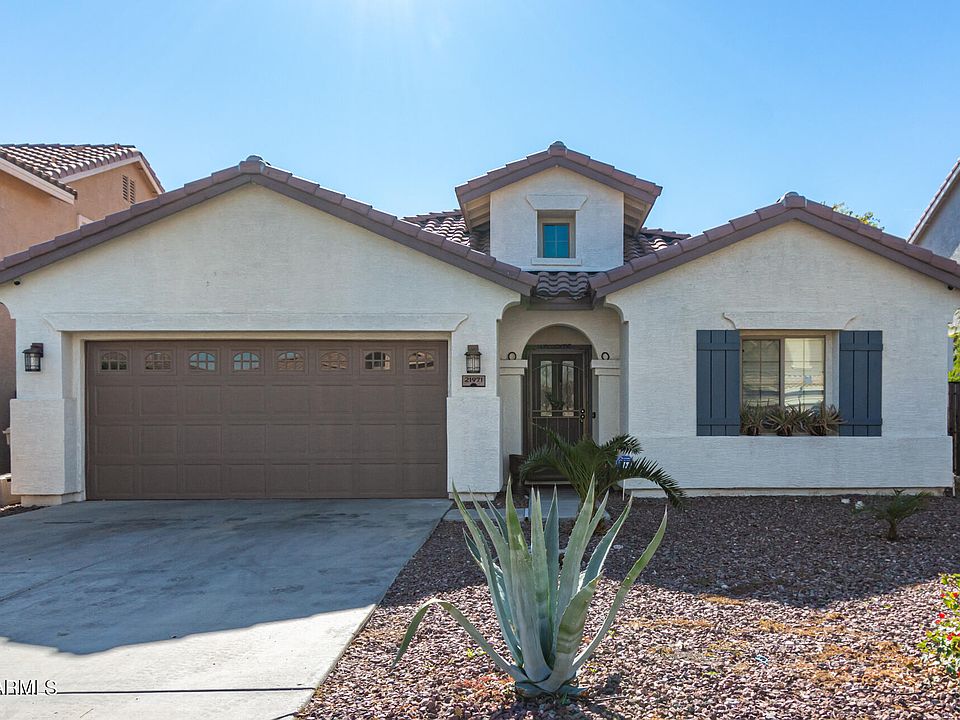 This fantastic single-level residence displays an easy-care landscape, an RV gate, 2-car garage & a pool. High ceilings, stylish tile flooring, recessed lighting, & a spacious living room w/a media niche & Arcadia doors to the back are features you'll love. Continue onto the bright eat-in kitchen showcasing a bay window, SS appliances, recessed lighting, a convenient pantry, corrian counter tops, & beautiful shaker cabinets w/crown molding. The primary bedroom offers a sitting room w/a bay window, a full ensuite w/dual sinks & a separate tub. Enjoy the refreshing pool & children's playground in the spacious backyard! Excellent location! Close to shops, restaurants, parks, schools, & more.