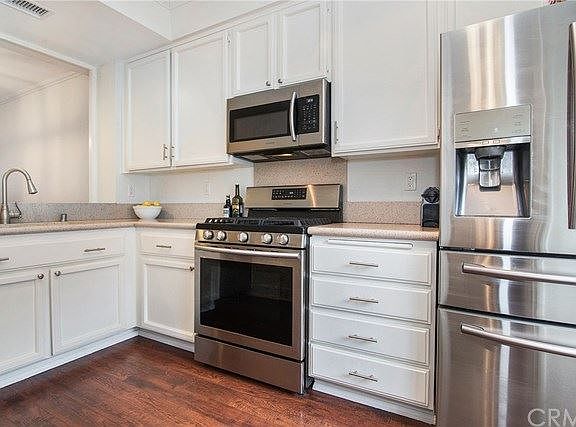 Updated Condo with Amazing Views! This beautiful 2 bedroom, 3 bath condo style home with 2, one car garages is located in the highly sought after community of Coral Gardens. If you are looking for a condo with beautiful indoor and outdoor space, then look no further. Enjoy the outdoors with a beautiful gated front courtyard, a backyard which is perfect for summer barbeques, and a balcony off the master bedroom with amazing mountain views. The location of this condo is perfect and private as it backs up to a wooded creek. Enjoy the open floor plan which is updated with laminate flooring, crown molding, recessed lighting, and a remodeled gas fireplace. The kitchen is light and bright with white cabinets, new hardware, and stainless steel appliances. Upstairs you will be amazed with the master bedroom which has vaulted ceilings, two sliding closets and a private balcony with mountain views. The master bathroom has been updated with a new marble countertop. The washer and dryer are conveniently located upstairs. Enjoy the beautiful community of Coral Gardens as the Association includes a pool, two spas, tennis courts and beautiful landscaping throughout. The property also has access to membership to Lake Mission Viejo which is only a short walk. You and your family are sure to enjoy all the fun activities at the lake with swimming, paddle boarding, fishing, boating, kayaking, and summer concerts on the lake.