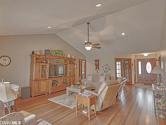 Spanish Cove Brick Home on the Bayside. This home has been well cared for and it shows. A few steps to enjoy the pool, clubhouse and fishing pier at the Club House makes the location ideal for a Spanish Cove resident. View of bay from backyard. With over 2000 sqft. of living space this home makes a perfect setting for entertaining. 3/2 with an office, formal dining space, and breakfast area. Entering the home you will find bamboo wood flooring and high ceilings with the open floor concept. The master suite is spacious with a large walk in closet, sliding doors that open to the sunroom, and master bath with his and her vanities, separate tub/shower. Sunroom is perfect to read your favorite book with all natural lighting and ceramic tile. Kitchen features all white appliances, light wood cabinets, breakfast bar, breakfast sitting area, quartz countertops, and ceramic tile flooring. Separate laundry room. 2 car garage with additional shelving, fridge and stand up freezer that stay, and walk-in attic for extra storage space. Backyard is fenced, yard has been maintained by TRUGREEN, and the sprinkler system is on a well. Sunroom opens to the outdoor patio that has a jacuzzi and entertaining space. Backyard also has a shed with windows, loft and electric run to it with a 8 X 8 and 12 x 10 section. 1 year Home Warranty and storm shutters for all windows including shed windows. Spanish Cove is an amenity rich community that offers: 24 hr. security, Year round Swimming pool, Fishing Pier, beach area, Tennis courts, Fitness center, Laundry Area, Playgrounds, 2 Clubhouses, scheduled activities, nature trail and garbage pick up. Down the road you will find the Lillian Boat Launch, Lillian Water front Park, and the Lillian Recreation Park. Lillian, Alabama sits along the Perdido Bay and the Florida/Alabama state line. A short drive to Pensacola shopping, Pensacola NAS(Blue Angels), VA hospital, and beaches. OWA and Tanger Outlets are within a 20 minute drive.