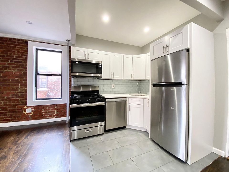 STUNNING GUT RENOVATED 2 BEDROOM 1 BATH IN PELHAM PARKWAY Apartment features: Open style kitchen with stainless steel appliances, dishwasher, microwave Hardwood floors Exposed brickwork Recessed lighting throughout Large windows with natural sunlight King & queen size bedroom Fully tiled bathroom Elevator in building Laundry in building Within walking distance to the 5/2 train line Super quiet and well maintained building Owner pays heat and water