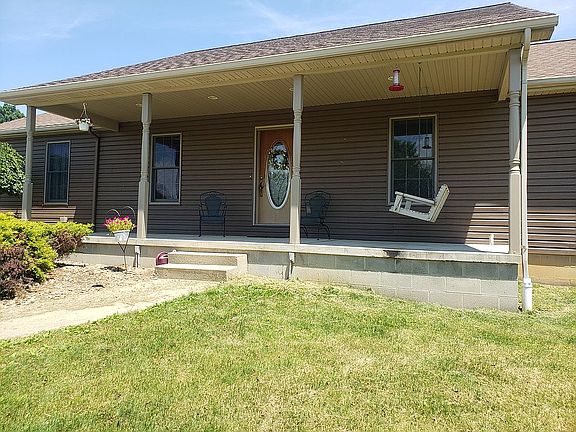 Spacious ranch home in the country on 5 acres. 1,836 square feet with an additional 800 square feet of partially finished living space in the basement. 4 bedrooms, 3 full baths with an additional full bath in the one car attached garage. Ample closet and storage space. Geothermal heats and cools the house. There is a corn stove in the living room for heat if you choose. 32x64 pole barn with concrete floor and 2 garage doors. Part of the barn is sectioned off for a woodshop and is heated and has plenty of storage. Half an acre stocked pond with beach area and fountain. Located in Monroeville school district.