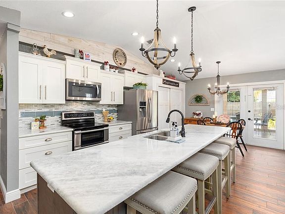 COMPLETELY REMODELED three bedroom, two bath, two car garage pool home located in one of the highest points in Pinellas County. Oversized yard nestled on a corner lot completely fenced and private. Let's start with the dream kitchen where the ceilings were raised to create an open and airy space where the focal point is the large island overlooking the family room with a wood burning fireplace. Walk out the double door to the enclosed patio great for entertaining with beautiful wainscoting and open views of the pool (2019 resurfaced) and beyond. The kitchen offers white shaker cabinets ( dove tail, soft close) Quartz Countertops, large island in grey for contrast and stainless steel appliances with double oven. All three bedrooms have walk in closets. Barn door in master bedroom to the bathroom which offers a shower. Wood ceramic tile throughout the main areas and wood laminate flooring in the bedrooms. Water heater 2018, Roof 2013..Sump pump is hooked up to all the gutters on the back of the home with french drains across the rear of the home. Check out the great schools. Dont Miss this one.
