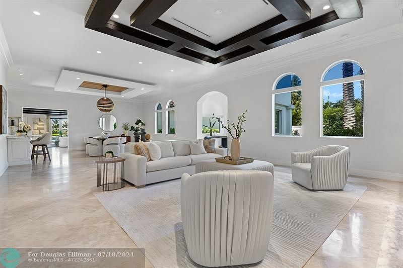 Discover Timeless Elegance in Palm Beach Farms: This luxurious waterfront estate, set on over half an acre, offers breathtaking light-filled living spaces & stands as one of the market's most unique properties. The gourmet chef's kitchen features Sub-Zero-Wolf appliances, custom cabinetry & quartz countertops. The primary suite is a tranquil sanctuary with panoramic pool/canal views, an enormous walk-in closet, & an opulent ensuite bathroom. Downstairs, a private living area spans over 1,000 square feet with built-in views of the pool. Outside, enjoy a private paradise with an expansive pool area & picturesque canal views, perfect for lavish entertaining & serene relaxation. This estate exudes sophistication and elegance, offering unparalleled privacy and a truly unique living experience.