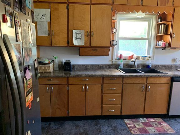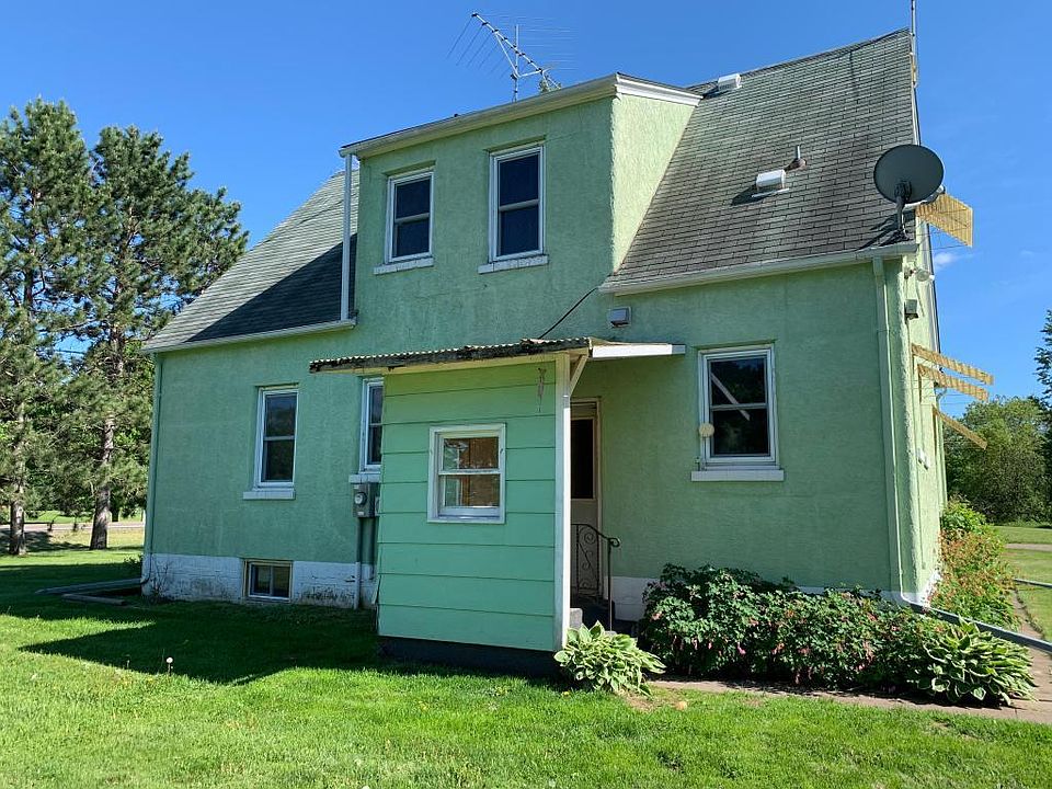Nicely maintained 1.5 story with some updates. Great location just outside of town, large yard. Main floor features roomy kitchen with ample storage, stainless appliances, nice size dinging room with space for large table, cozy living room with gas fireplace and ceiling fan, main floor bedroom, updated bath. Upper level has 2 large bedrooms and a bonus storage area, and 1/2 bath. Lower level unfinished - it was previously finished with additional bedroom and family room. Detached garage with storage above and lean-to.