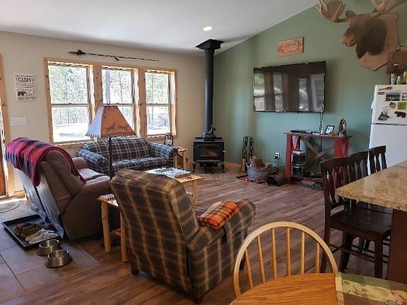 A DELIGHTFUL Home tucked in the woods with 2 bedrooms, 1 & 1/2 bath, 2-car detached garage and deeded access to Spider Lake! This quality built 2x6 constructed home, finished in 2018, comes completely furnished! It sits beneath the towering pines on 2.2 acres and overlooks some low/wetlands which provides wildlife and privacy. It has a southern exposure and is well-wooded. The open concept living area has a vaulted ceiling, ceramic tile & laminated flooring with in-floor heating. The kitchen has beautiful dark knotty maple cabinets and a large island. A set of patio doors off the dining area offer natural light and a woodsy view! This home is high-efficient with a commercial grade boiler combination water heater. A maintenance-free exterior is perfect for your "Up North" get-away! Located not far from town, off a black-topped town road and offers high speed fiber optic internet! Around the corner you will find the private shared boat landing to launch your boat. Direct access to all the recreational trails. Don't Miss this One!