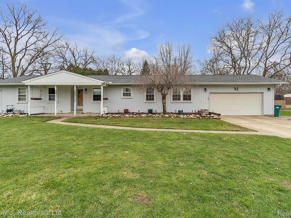 Sprawling Ranch with 1,992 sq ft, 4 bedrooms, 1.5 baths on 1.4 acres. This has a great location away from the hustle & bustle, nice place to relax and enjoy peace and quiet. Brand new tear off roof, 12/2024 with transferable warranty. The home offers plenty of space with a flex room, use as an office, kids play rm or library. There is a sitting area off the kitchen or use it for your table space. All the bedrooms have hardwood floors and are all decent size rooms. All appliances stay including wash & dryer, kitchen has stainless steel appliances. There is a programmable thermostat, A/C & Furnace, new in 2021. Plenty of space for a shed or pool. There are also 2 built in Mounted Gun Safes. There are 2 TV mounts, 3 exterior cameras and a ring doorbell that are included with the sale of the home. The septic has been inspected and passed Wayne County TOS. C of O at close. The special assessment is for trash pickup. Immediate occupancy.