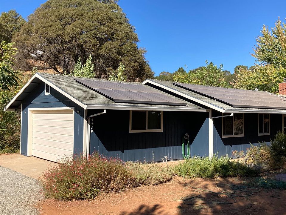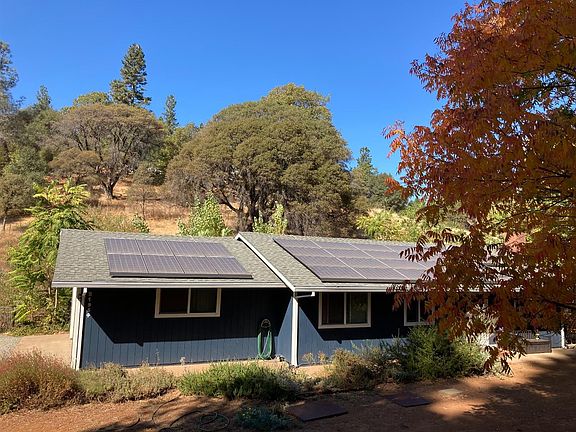 This solar powered home has 3 bedroom, 1 bath on 1.1 acres with so many features that you will love Home has a great open feel and it's clean, neat, and ready for it's new owners. Smarter Broadband supplies high speed internet so you can work/school from home. Located 4.5 miles from Highway 80 if you commute, and 5 miles from schools and new Holiday market for shopping. Beautifully updated bathroom, new carpet in master, new counters and appliances in the kitchen, travertine floors in the kitchen and dinning rooms. Outdoor features concrete patio, hot tub, privacy fence out front, dog run out back, seasonal creek, mature trees for shade, fenced in garden area with plenty of sun. 2 car attached garage along with 2 outbuildings for plenty of storage. Plenty of room for animals, an RV, boat, or extra vehicles. Come make it your own