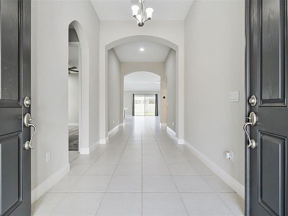 One or more photo(s) has been virtually staged. This stunning 2021 built single-story 4 Bedroom, 3 Bath home with a 3 car garage sits on a premium oversized 65 x 132 lot with no front yard neighbors and tranquil pond views. Located in a unique section of Connerton featuring Homes by WestBay with wider/deeper lots and larger homes, this property offers both privacy and distinction. A double door grand entryway opens to tall ceilings and elegant architectural details that immediately set a welcoming and upscale tone. At the heart of the home, the expansive kitchen overlooks both the great room and the backyard, creating a perfect space for everyday living and entertaining. The kitchen is beautifully appointed with GE Café Series appliances, a double oven, gas cooktop, tiled backsplash, quartz countertops, 42 inch cabinetry, a walk in pantry, and an expansive island with front storage cabinetry and a double sided breakfast bar. The triple split floor plan offers exceptional privacy, with the luxurious primary suite tucked away and featuring dual walk in closets and a spa inspired en suite bath with quartz countertops, dual vanities, and a spacious walk in tile and glass shower. Two secondary bedrooms and a full bath are located off the foyer, while a fourth bedroom with an additional full bath is privately situated beyond the laundry room, making it ideal for guests or multigenerational living. Additional highlights include a large rear covered patio perfect for outdoor relaxation, eight foot doors throughout the home, a natural gas tankless water heater, gas dryer hookup, gas cooktop, and a patio that is plumbed for a natural gas grill. The home is equipped with an alarm system, an Ecobee thermostat, and epoxy finished garage flooring. The exterior of the home showcases brand new St. Augustine sod with fresh landscaping, enhancing its curb appeal. Connerton is one of Tampa Bay’s most desirable master planned communities and offers top rated schools, resort style pools with water slides, sports courts, a clubhouse, coffee shop, fitness center, playgrounds, parks, multi use paths, and miles of scenic nature trails. All of this is enjoyed with a low HOA fee of just $261 per quarter, making this exceptional home an outstanding opportunity for luxury living and an active lifestyle. Book your private showing today before this one is SOLD!