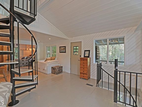 Let the lake fun begin! Situated close to the water's edge with long shore frontage, this renovated 3 bedroom/2 bath home has a separate 1 bedroom/1 bath 'grandfathered in' guest cottage. Clean and whimsical interiors abound with white wood paneling, painted wood floors, and a new cottage kitchen with modern appliances. The open floor plan encourages family interaction, yet provides opportunities for different zones of living. Additional features include, lakeside porches, decks and outdoor living spaces including an outdoor fire pit. The two story, two stall boathouse offers additional relaxing space with great lake views!
