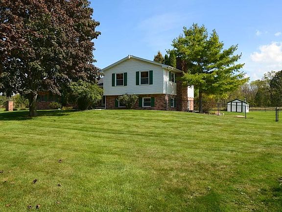Welcome to this beautiful, custom-built, showcase home with grand circle drive entrance and mature landscaping. Maintenance-free 17x36 deck overlooks the stunning 20x40 in-ground pool all nestled on 10 acres. The 40x42 2-story polebarn has office space upstairs. So many amenities you'll have to visit to get the full list. Meticulously maintained home features a beautiful kitchen. Dining room opens thru French doors to the pool. Tucked upstairs is the master suite, 2 bedrooms and a guest full bath. Family room level is flooded with light. Warmed by a gas fireplace and hosting the 3rd full bath and cozy bedroom, this level opens to a concrete patio. Lower level basement is perfect for storage and all mechanicals. New appliance and furnace/central A/C are just some of the many splendid features of this home. Visit today! Property has 2 lots with 2 tax id's. 1 is in Western Schools & 1 is in Northwest. Property also has Contronics security system, invisible fence and a rented filtration system.