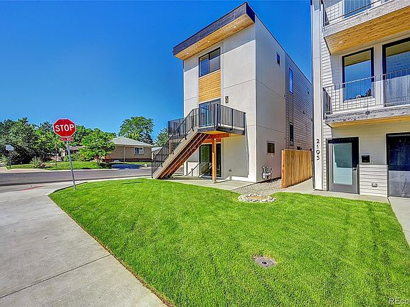 FREE 2/1 buy down with builder's lender. NEW Construction, Modern 3 bed/3.5 bath, 1/2 duplex in Denver's up-and-coming University Hills North. 4 stories functional living w/ huge kitchen, stunning lighting and beautiful views. South-facing with excessive windows and light. Overlooking Denver's newest public park this 1/2 duplex has a wide-open floorplan, a gorgeous front deck & patio, more windows than you can count & stunning, modern finishes. Large fenced side yard. The front door faces south where you enter the property & up to the main floor which features an oversized island, with/ Eat-in Kitchen dining, a deluxe large pantry, custom soft-close cabinetry, tile backsplash, under-cabinet lighting, Kitchen-Aid stainless appliances w/ gas range, hood & more. Enjoy the nook and custom monorail staircase with/ floating wood stair treads. The entire main floor shows off beautiful solid oak hardwoods (no cheap engineered flooring) 8' sliding patio doors walk you out to a huge front private deck. A 1/2 bath with modern tile & stunning backlit mirror are rarely found at this price point. Head upstairs to your huge primary suite, secondary suite & laundry room. The primary bedroom has 2 large closets, a sliding glass door to another private deck. The primary ensuite bath has a double vanity, custom tile & huge shower. The first floor features a third bedroom with w/an ensuite & is accessible from the side door (or main floor), perfect for guests or Airbnb. Modern finishes throughout. Multiple outdoor spaces. Separate mechanical systems for better temperature control. Pre-wired for TV throughout. 2 car attached garage wired for electric vehicle & smart/wifi opener. NO HOA. 1/2 block to CO Lightrail. Close to everything. I-25, DU, Platt/Wash Park. New city park across the street with estimated completion in 2025. This neighborhood will vastly differ in only a couple of years. Don't miss this amazing opportunity! side yard will be fenced before closing.