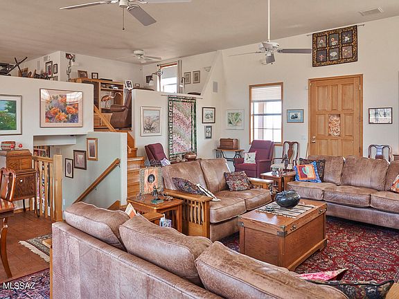 2,597 sf Custom Built Split Level SFR on 80.26 acres with a breathtaking view of the Chiricahuas. Main level featured living area/formal dining, sunroom. UL-primary bedroom, oversized walk in closet, sitting area, and bathroom. LL kitchen, guest bedroom, office, full bathroom, craft /laundry room, access to enclosed 2 car garage with ample storage. Additional features: radiant floor heating, rolling shutters on exterior windows, enclosed courtyard, sunroom, wildlife viewing area. Guest house, Large metal building/barn with workshop & green house - large enough for small airplane/vehicle storage. Portal is known worldwide for dark night skies, world class birding, magnificent mountain views. Minutes from restaurants, gallery, museum, and outdoor recreation in Cave Creek Canyon.
