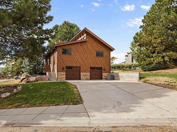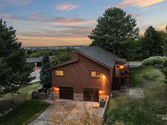 Sink into a lifetime of spectacular sunsets in this stunning mid-century modern home perched on a corner lot in Boise's coveted Warm Springs Mesa. Enter to find warm, wooden architectural features complimented by new flooring & picture windows that frame valley views from the expansive great room & formal dining area; a true entertainer's paradise. The kitchen opens to a separate eat-in area and allows easy access to the private back deck that glimpses the back side of Table Rock. A spacious primary bedroom includes a walk-in closet & en-suite featuring a jetted-tub and walk-in shower w/ full body sprays. The main level is completed with a half bath & a cute second bedroom that provides worldly adventures via a wall-sized global map, perfect for any dreamer! Downstairs is a cozy family room & fireplace with floor to ceiling windows that invite nature in. Two additional bedrooms, the second full bathroom, and a utility room finish off the lower level. The oversized two car garage located just off the utility room, provides plenty of parking space plus extra room for storing tools & toys. The park-like lot has gorgeous stone accents and is a great space to enjoy peace & quiet among the trees. No HOAs and minutes from Ridge to River trails, the greenbelt, and a short 10 minute drive to Downtown Boise. New roof in 2020 and full HVAC replacement in 2025! This home is a must see!