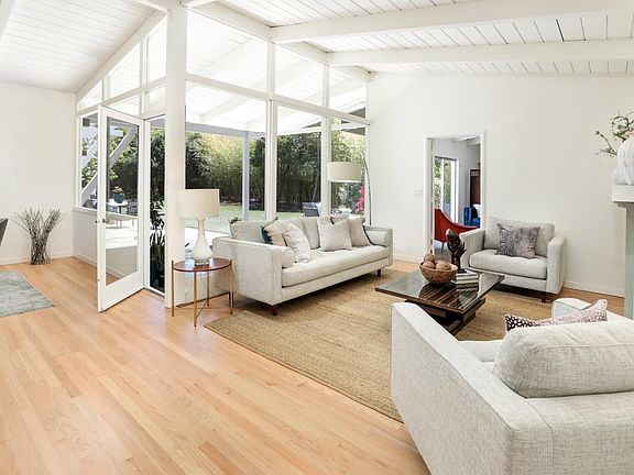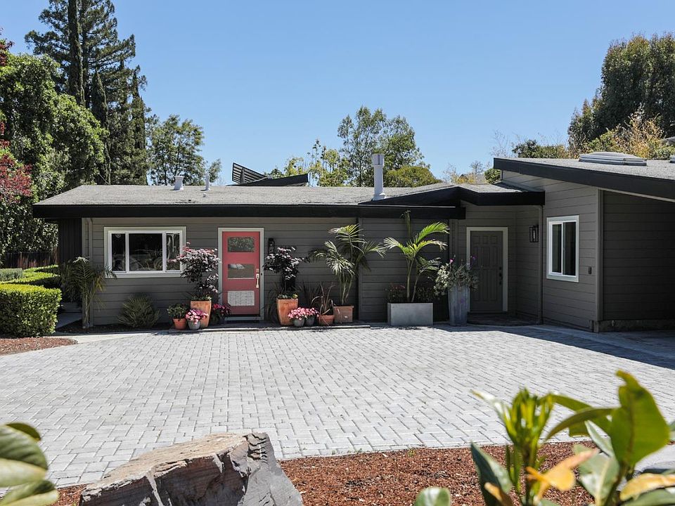 This property offers an easy and relaxed lifestyle with truly seamless indoor/outdoor living. Situated on a flat lot in excess of 12,400 square feet, there is amazing potential to expand the main residence, add a pool and ADU. The vaulted ceilings with floor to ceiling windows in the living and dining rooms create a decidedly open and airy mid-century vibe. The updated kitchen offers sophistication with fine wood cabinetry, black hardware and appliances and a reflective glass backsplash. A fantastic master suite with walk-through closet and luxurious bathroom is privately situated at the rear of the home. There is extraordinary front yard space for parking and future creation of a private courtyard with fountain. The vast rear yard is completely private and a sanctuary of sunlight and open space. Home has owned solar system. Across street from La Entrada School and tennis courts, this property enjoys the benefits of the Las Lomitas School District. Close to Phillips Brooks and 280.