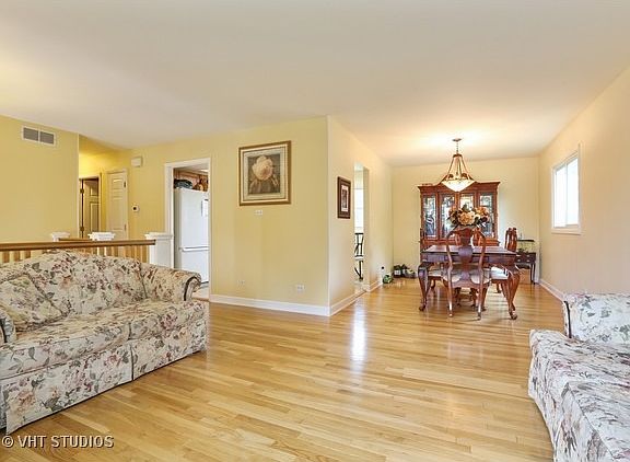 Great location & VERY PRIVATE fenced backyard w/ MATURE TREES & large patio!*NEWERS include: roof, beveled windows, siding & paint!*Gleaming HARDWOOD flooring!*Large EAT IN KITCHEN & ALL APPLIANCES STAY including front loading washer & dryer* Spacious OFFICE/4TH BR off of Family Room!*Half bath can easily be converted to full bathroom*Grade school within subdivision & EASY access to I-355*