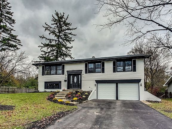 Amazing Butterfield West home which has undergone a full structural renovation by an expert designer. Classic Glen Ellyn vibe with modern updates for todays living. Awesome black and white color pallet on outside of home creates a striking curb appeal. New landscaping, new asphalt driveway, new exterior paint, and new black windows. Step into the vaulted entryway which leads up to the awesome open floor-plan main rooms which includes the island clad kitchen which flows to the dining room which attaches to the living room. Incredible island divides the kitchen from the dining and living rooms. 3 all new bathrooms with stunning designer tile and material selections. New kitchen with new black stainless steel appliances, Carrera Marble look Quartz countertops, and luxurious new soft close kitchen cabinets with solid black hardware. New finished hardwood floors stained to an incredible dark gray color, new durable and classy vinyl floors in basement. 5 large bedrooms with ample light, new fan lights, paint and trim as well as new closet space. New trim all over home, new doors everywhere, new paint, new designer lighting in every room. Every single aspect of this home has been scrutinized and repaired or replaced with quality materials. Licensed and bonded contractors performed all work with permits. The mid-October snow killed the grass seed. Seller will come back in April and plant grass seed.