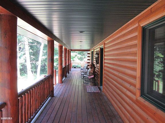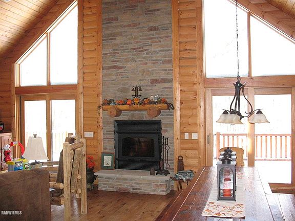 Beautiful log sided home in quiet wooded cul-de-sac, is ready to move in and enjoy. Lots of room inside and outside for family and friends to gather. Great room includes living, dining and kitchen for open concept. Screened in porch and large deck accessible from the great room. Spacious Master bedroom in loft with bath and sitting area, looking down on great room. Two guest baths on the main level with hall bath. Lower level includes 2 bedrooms, good sized family room and bath. There is a wine fridge and wet bar in LL. Ceiling fans throughout. Large detached garage 26 x 30 for storage of toys. Very nicely landscaped. Deeded slip E 28 Sellers are open to selling some personal property.
