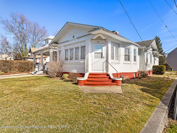24 Brevent Ave features a beautiful 3 season Room, Living Room with Wood Floors and a Wood burning Stone Fireplace, Dining Room, Updated Kitchen, 2 Bedrooms, 1 Full Bath, spacious Basement, Newer Roof, Newer Ruud Natural Gas High Efficiency Furnace & AC, Hot Water Heater, and a fenced in yard. Conveniently located close to the water, Leonardo Marina, Shopping, Restaurants, Route 36 & GSP. Both units currently rented. MUST SEE!