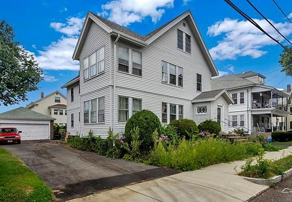 Oversized Two-family in highly desirable East Arlington neighborhood close to Somerville, Cambridge and a short distance to Alewife train station. Great curb appeal. Hardwood floors throughout and loaded with natural woodwork. First floor has large living room which leads to heated sunroom with french door. Dining room with built-in china cabinet and small butlers pantry. Eat in kitchen with 2 bedrooms and bath. Second floor has the same floor plan with a set of stairs to the 3rd floor with 1 finished bedroom. Both units have rear porches and there is a 2 car detached garage. This property is in need of extensive renovation and is a great investment opportunity or owner occupied two-family. House will only be shown at open houses on September 4th and September 5th from 5-6:30PM and September 8th from 3-4:30PM. Offers are due, Monday, September 9th by 2:00PM. Please allow 24 hours for a response.