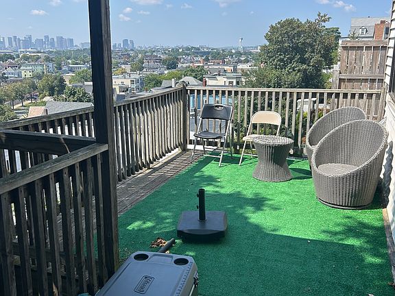 Recently, renovated, new flooring, 3nd Floor, 10 x 40 deck off the back, on street parking, quiet neighborhood, walk to T, close to stores and shopping. Great views of Boston and the ocean Owner pays water tenant responsible for gas for heating and electric bill, refreshments last months, 500 security deposit due at signing, one year lease