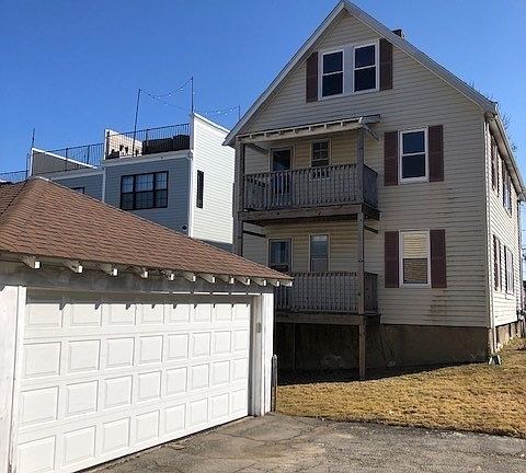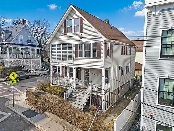 Sun drenched two family home located on a corner lot with a large detached two car garage.. First floor rehabbed 10 years ago, move in condition. Roof approximately 12 years old, first floor windows replaced, some electrical updates, with steam heat. Light filled sun porch in the front of the home, two medium size porches in the rear of the home overlooking spacious yard. Property can accommodate 4 vehicles off street parking. Location offers easy access to I-93, public transportation, walking distance to markets, stores and entertainment.