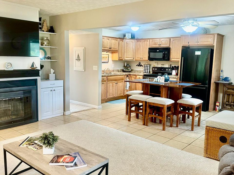 Absolutely adorable, turn key 2 bed 1 bath upper level condo in Woodson Bend Resort. Spacious open floor plan with updated kitchen and bath. New carpet just installed in family room and hallway, with new storm door, new closet doors, neutral color pallet and beautifully furnished. Gorgeous golf view