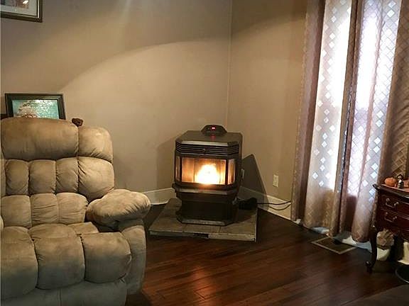 This beautiful Village home offers loads of room, including two separate living rooms, one with a wood pellet stove to keep you toasty warm and offer supplemental heat. Downstairs has been done in bamboo wood flooring (some minimal carpeting), downstairs bedroom, a kitchen big enough to invite everyone for the holidays! Mission style wood cabinets, large breakfast bar, plenty of counter space and separate eat in area in kitchen. HUGE downstairs bathroom with jacuzzi bath (all separate), two bowl vanity sink, and stand alone shower. Upstairs you'll find 3 additional bedrooms and 1 (1/2 ) bath. Home offers a very large entrance area coming into Kitchen and separate laundry room as well. Partially fenced in backyard. Adorable covered front/back porch.