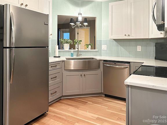 LOCATION, LOCATION, LOCATION! This adorable ground level end unit condo is just steps away from the Hickory and walking/biking distance to all that downtown Hickory has to offer. Sit on the cozy deck overlooking a small creek and enjoy your morning coffee or evening beverage. Offering two bedrooms and two bathrooms, a spacious great room and recently remodeled kitchen, this home is perfect for anyone wanting to live close to downtown.