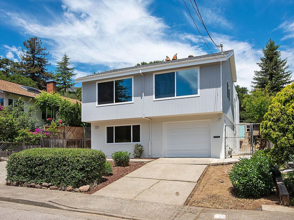 Welcome to this recently updated home in Sunny View Terrace in West San Rafael near San Anselmo. The open-concept floor plan is perfect for entertaining. The kitchen boasts new soft-close shaker cabinets, quartz counters, stainless steel appliances, and a wine cooler. 3 bedrooms are upstairs, 1 bedroom downstairs. Bedrooms are a generous size with plenty of closet space. The primary bedroom has an ensuite bathroom and a walk-in closet. Big backyard with patio and terraced garden areas. Fresh paint throughout, recessed lighting, new windows, and plenty of natural light make this a must-see. Washer & dryer located next to the 1 car attached garage and RV parking. View of Mt Tam. A must-see.