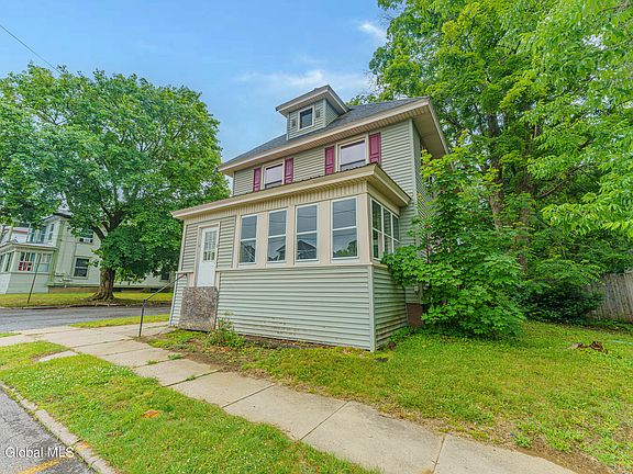 This traditional two-story home in Gloversville features an inviting eat-in kitchen, a cozy living room, and a formal dining room perfect for entertaining. The enclosed front porch adds extra living space and charm. Upstairs, you'll find three bedrooms and a full bath. Situated on a nice corner lot, the property also includes a detached garage conveniently located off the backyard.