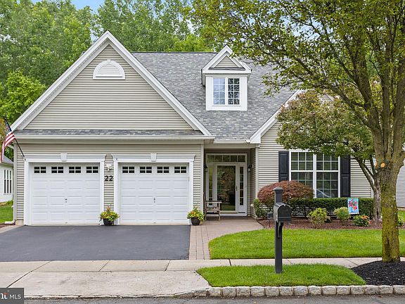 You are invited to this breathtaking Sundance Model home in the Enchantment Development in Hamilton, NJ. This move in ready home welcomes you with 10 foot ceilings, crown moldings and new flooring. The oversized kitchen is perfect for entertaining or gatherings and opens to the grand family room featuring a gas fireplace and an elegant formal dining room with hardwood flooring. This home has an upgraded 4 season sunroom full of light and privacy overlooking the woods. From the sunroom, sliding glass doors open to a paver patio that is inviting for quiet gatherings or a relaxing afternoon. Back inside, this home features 2 Large bedrooms, and an Office that could be used as a 3rd Bedroom if needed. The Primary Suite offers crown molding, ceiling fan, 2 large walk-in closets, upgraded granite countertops and cabinets, soak in tub and a stall shower. The guest bedroom is spacious with a new rug. New Range Stove, Newer Roof and HVAC system. This home is ready for its new owners. The Enchantment Development is one of Hamilton's top Senior resort-type living communities featuring a gated entrance, clubhouse, pool and many more amenities. Close to the Hamilton Marketplace for all your shopping needs, Rt 130, I-195 and the turnpike for easy access to the city, beaches or Philly. This home is an estate sale. It is being sold "AS IS".