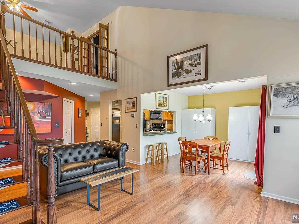 Move-in ready 2nd-floor condominium complete with 2 bedrooms and 2 full bathrooms. The easy-access kitchen flows into the formal open dining room leading to the deck with great views, and an open family room with amazing, vaulted ceilings, and a wood-burning fireplace! The master bedroom has plenty of storage with dual closets and an ensuite bathroom with a standing shower and a large jacuzzi tub. The second bedroom includes a walk-in closet for extra storage. A modern floating staircase leads you to the open 2nd-floor loft which includes a large living room and den. A secret hidden 'speakeasy' awaits you as well behind the left bookcase! In unit laundry room completes this home on the first floor. This home is conveniently located near route 80 for easy commuting and Garrett Mountain Reserve where you can enjoy a beautiful park atmosphere, exercise, summer BBQ's and more