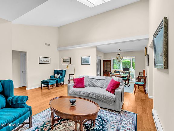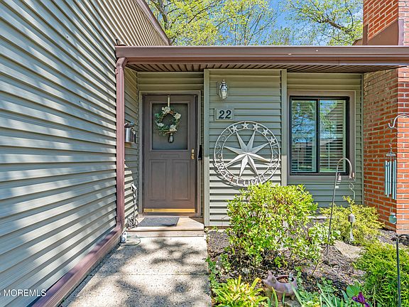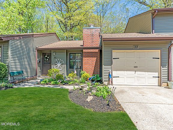 Discover serene living at 22 Andover Ct in the sought-after Shadow Lake Village, a premier 55+ community. This desirable Clinton model end-unit ranch backs onto a tranquil wooded area, offering privacy and natural beauty. The spacious living room features vaulted ceilings and a cozy fireplace, seamlessly flowing into the dining area. An updated kitchen boasts granite countertops and stainless steel appliances. Enjoy the bright sunroom leading to a private patio—perfect for morning coffee. The large primary bedroom includes an ensuite bath, while the guest bedroom is ideal for visitors. A versatile den provides direct garage access. Embrace active living with amenities like a 9-hole golf course, pool, clubhouse, and scenic walking trails.