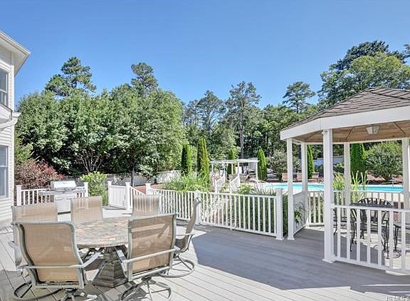 Spectacular Island Woods Estate situated on an incredibly private one acre lot in a premier location for the area. Very low traffic on a street w/mature trees. Front sitting porch, Brazilian Koa solid wood flrs throughout, sunken 20x20 family rm w/20 ft height & gas fireplace. Large vaulted ceiling conservatory, Andersen windows, custom window blinds, GE Cafe Series stainless steel appliances, 1st floor office can be 5th bedrm, extensive commerical type alarm system, master bedrm w/sitting room & closets galore. Finished basement & area for storage. 3 zone heat & air. Attention car collectors--3 car garage w/high lift insulated doors w/commercial wall mounted jackshaft door openers for future car lifts. Large multi-level composite deck w/gazebo & motorized awning. Heated inground pool with pergola & large storage shed. Low maintenance stone backyard surrounded by over 600 ft of vinyl fencing with 11 ft opening gates to store your boats/RVs in rear. Sprinkler system on well.