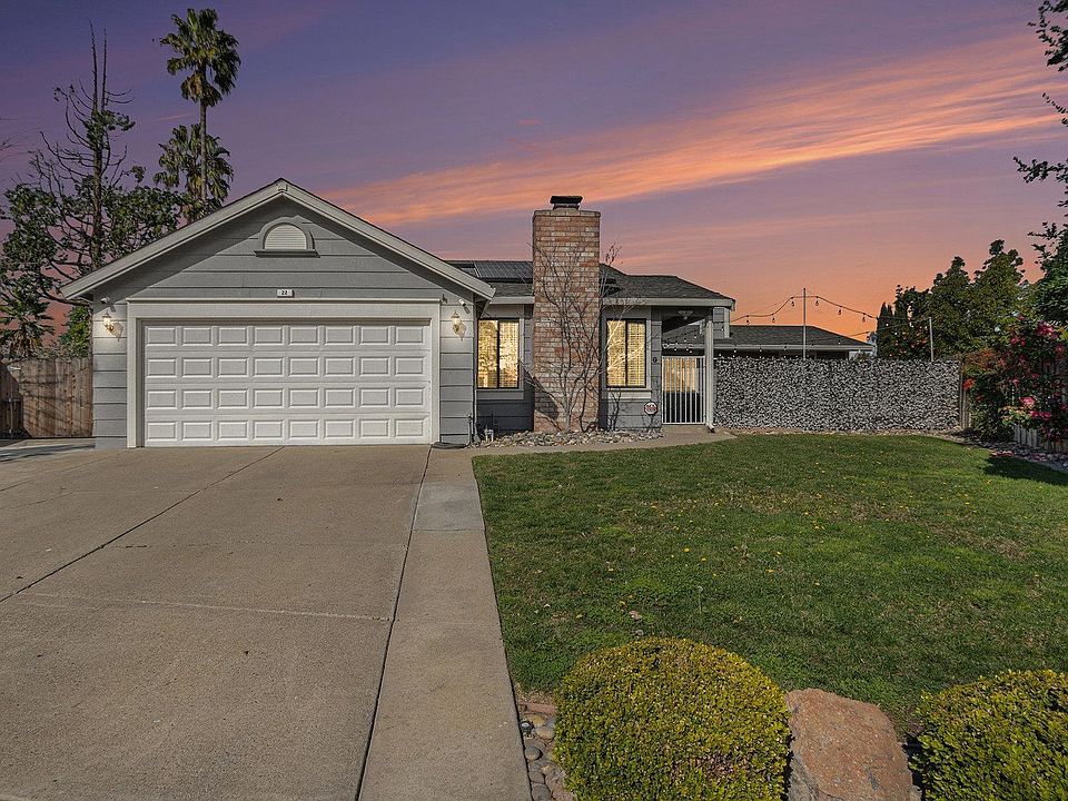This home represents casual sophistication at it's best. Located on a quarter acre lot in a quiet court location. An enclosed front yard courtyard creates a warm and welcoming entrance. Side yard access is a perfect place for a boat or RV. The expansive backyard has a covered patio and a large space for a pool if you choose. A brand new fence has been installed. Inside the home boast updates that contribute to a comfortable and stylish living space. Hardwood floors, exposed wood vaulted ceiling, granite counters, stainless steel appliances and a cozy wood burning stove. A new high efficiency HVAC system was installed in 2022. Solar (leased) has been installed and is a huge savings on your electric expense. Also, low property tax area.
