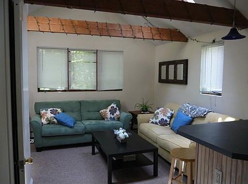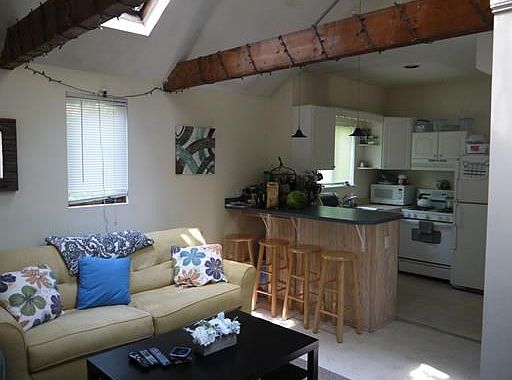 Hidden Gem in the city with private yard! You are close enough to the city to be near everything and with this private back yard you are given the feel of being away from the city. Great for entertaining with a half bath on the first floor and your private full bath on the second. Do you like skylights, ceiling fans and vaulted ceilings with wooden beams? Then this is for you! Two off street parking spots (tandem) is included in the rent. There is a third room to do with as you choose. It works great as an office space or study, perhaps you are burdened with a large wardrobe then the third room can be your walk in closet. Hardwood floors, washer/dryer hookups in basement, pantry and eat-in breakfast bar are all great features that make this apartment work for you!