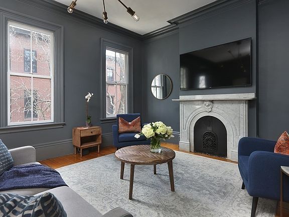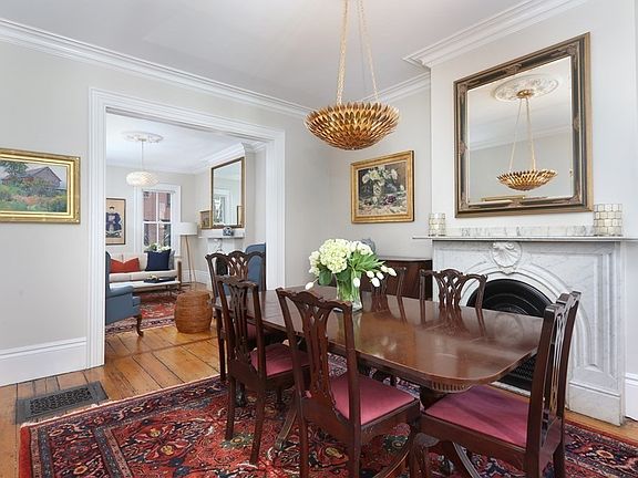 This 4 + bed brownstone, ideal for a growing family, is loaded w/period details & modern amenities w/2356 sq. ft. above grade & huge private yard rarely found in the city. Sun-filled kitchen has white cabinets, satin brass hardware, a Calcutta quartz backsplash, mitered counters, ss. appliances incl. Subzero. Directly off of the kitchen, private patio & huge private yard. Elegant dining room w/custom crown molding, wide, pumpkin pine fls. & marble mantle. Living has 2nd marble mantle, wide, pumpkin pine flrs.& custom crown molding. Well placed 1/2 bath is found adjacent to the living & kitchen areas. Upstairs houses master bed w/pumpkin pine firs & custom closets, 2nd living room & full bath. Full bath has marble floors & frameless glass shower. Top floor houses 3 beds w/wide, pumpkin pine flooring & guest bath. The unfinished basement offers an additional 937 square feet with enormous storage and potential to increase the home’s footprint. C/a & ideal location!