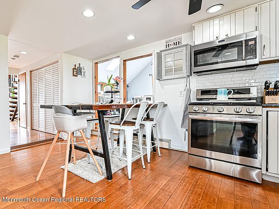 The backyard is ready for Summer Fun! Plenty of room to host guests in this spacious backyard. Additional storage area located under the home. Stay warm by the firepit on those cool NJ fall and spring evenings! Garage has ample storage for all the water toys!