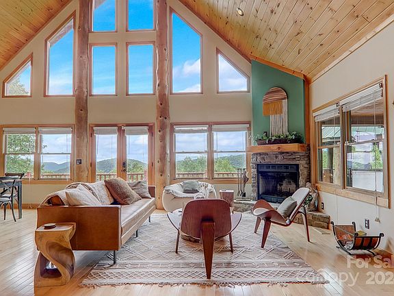 Indulge in this unique getaway spot located in Gateway Mountain. This luxurious 3-acre log cabin spares no detail. Enjoy gorgeous mountain views while having breakfast, sitting on the porch, or relaxing in the jacuzzi. The inviting primary suite upstairs features a gas fireplace, with the loft serving as a bonus office or extra sleeping area. The spacious basement includes room for a pool table, foosball, movies, and video games, making it perfect for families. This home offers privacy, tranquility, private access trails with waterfalls, and a lake with a canoe option. Just 25 minutes to Chimney Rock, a bit further to Lake Lure, and 35 minutes to Asheville. Currently rented on Airbnb with a property manager, it provides streaming income from day one. Book your private showing today to experience this exquisite gem. high speed internet with extended antenna, a Kohler generator that has recently been serviced, and a Tesla charger for EV Cars.