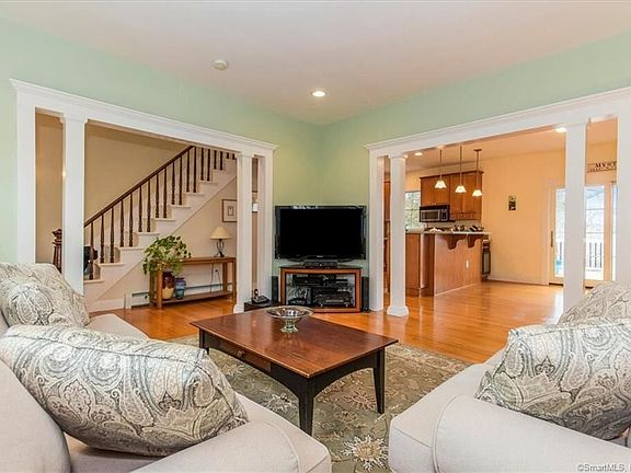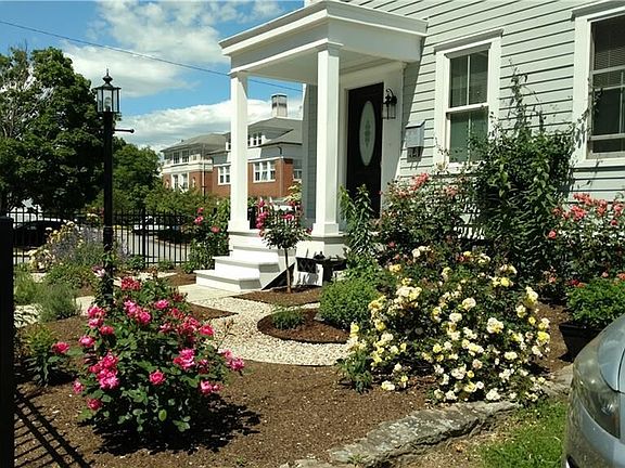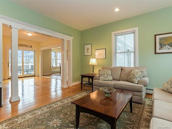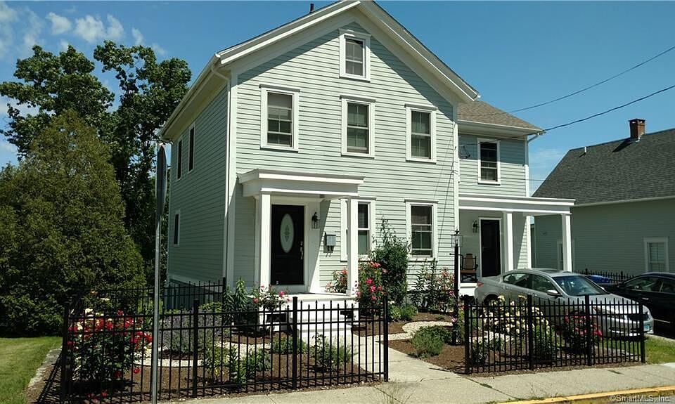 This home is located in the heart of Mystic and sits high on a hill overlooking the town and Mystic River. The home was recently remodeled which resulted in a comfortable open interior and attractive exterior. The home features 3 bedrooms, 3 1/2 baths. Three of the baths are new added during the remodel. There is a rear deck with water views and lovely views of the town and its historical buildings and the rear yard. Located only a city block away from the town makes it easy to walk to restaurants, shops and entertainment. The mechanicals have been updated, the siding replaced, new wood floors in some areas, updated bathrooms along with an addition that has beautiful dining area on first floor and a large master bedroom/bath on the second floor. The master bedroom has a charming Romeo and Juliet Balcony facing the rear of the house and also with lovely views of the river, seaport and out to Fishers Island.