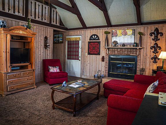 Chalet 22 presents an expansive and meticulously crafted three-bedroom chalet that exudes both style and functionality. This remarkable abode boasts an open layout, culminating in a fully-equipped kitchen, a cozy living room adorned with a charming fireplace, and an inviting dining area. In addition, tenants will benefit from invaluable amenities like a washer/dryer to ensure utmost convenience. Moreover, Chalet 22 has gone the extra mile in providing ramp access for enhanced accessibility. For those who revel in al fresco cooking, the deck is equipped with a charcoal grill that promises to elevate any outdoor culinary affair. When it comes to slumber, two full beds await tenants in the loft area upstairs with a stand up shower and toilet, while each of the downstairs bedrooms features a queen bed-ensuring sublime comfort throughout your stay. The main floor bathroom is a tub/shower. Renter pays electric (Diverse Power). Owner covers all remaining utilities- cable, internet, trash pick up, water, pest control, 24 hour security included. Small dogs allowed with additional fee 12 month lease